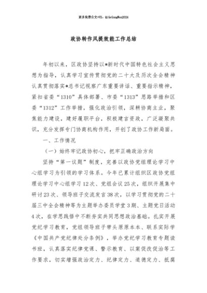 / 【七哥公文】2024年:政协转作风提效能工作总结+更多免费公文+VX:QiGeGongWen2024