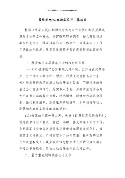 / 【七哥公文】2024年:局机关2024年政务公开工作总结+更多免费公文+VX:QiGeGongWen2024