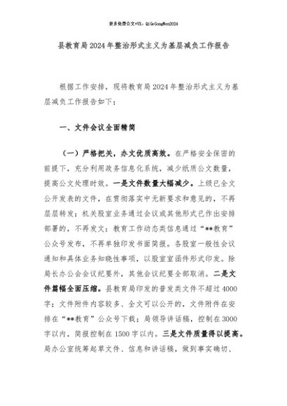 / 【七哥公文】2024年:县教育局2024年整治形式主义为基层减负工作报告+更多免费公文+VX:QiGeGongWen2024