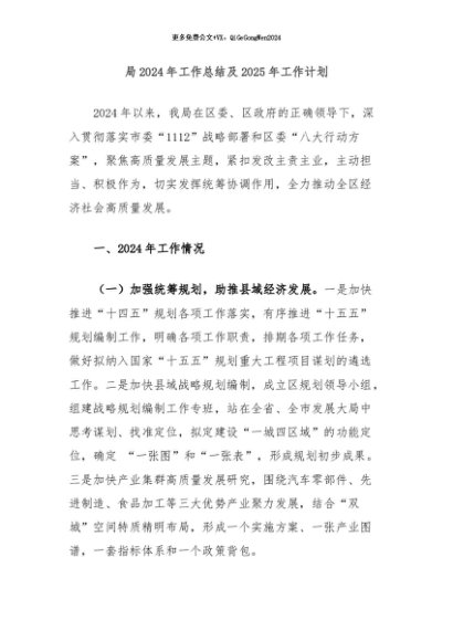 / 【七哥公文】2024年:局2024年工作总结及2025年工作计划+更多免费公文+VX:QiGeGongWen2024