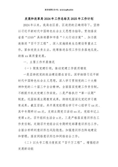【七哥公文】2024年:发展和改革局2024年工作总结及2025年工作计划+更多免费公文+VX:QiGeGongWen2024