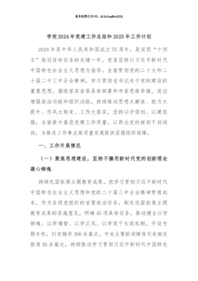 / 【七哥公文】2024年:学校2024年党建工作总结和2025年工作计划+更多免费公文+VX:QiGeGongWen2024