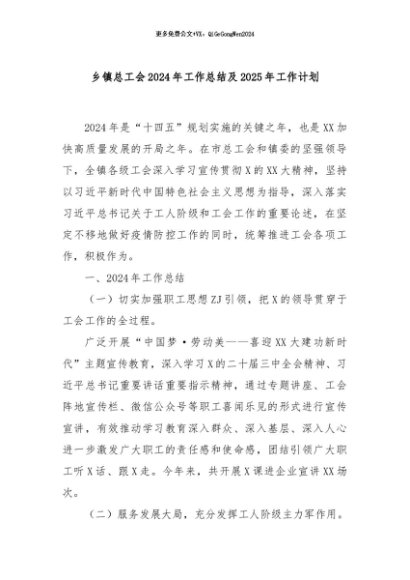 / 【七哥公文】2024年:乡镇总工会2024年工作总结及2025年工作计划+更多免费公文+VX:QiGeGongWen2024