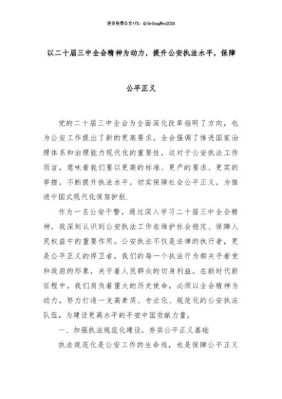 【七哥公文】2024年:以二十届三中全会精神为动力,提升公安执法水平,保障公平正义+更多免费公文+VX:QiGeGongWen2024