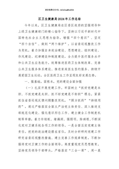 / 【七哥公文】2024年:区卫生健康局2024年工作总结+更多免费公文+VX:QiGeGongWen2024