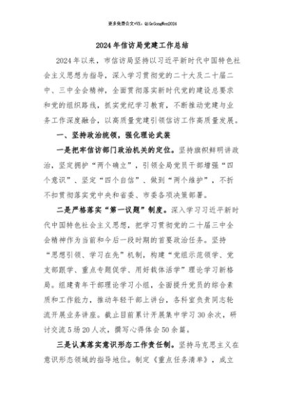 / 【七哥公文】2024年:2024年信访局党建工作总结+更多免费公文+VX:QiGeGongWen2024