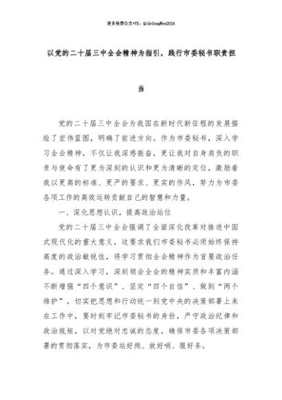 【七哥公文】2024年:以党的二十届三中全会精神为指引,践行市委秘书职责担当+更多免费公文+VX:QiGeGongWen2024