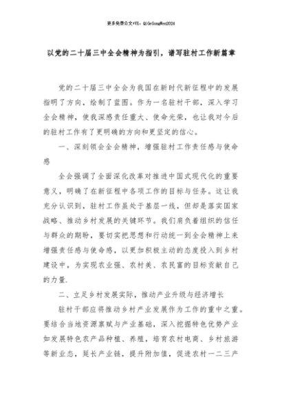 【七哥公文】2024年:以党的二十届三中全会精神为指引,谱写驻村工作新篇章+更多免费公文+VX:QiGeGongWen2024