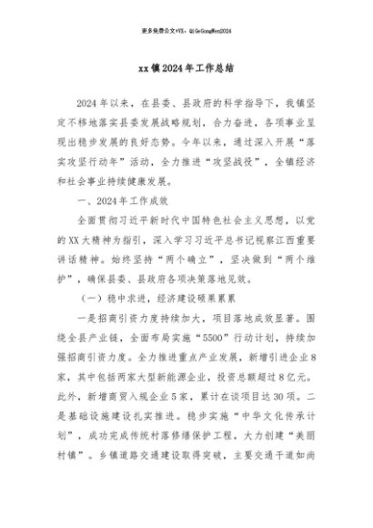 【七哥公文】2024年:xx镇2024年工作总结+更多免费公文+VX:QiGeGongWen2024