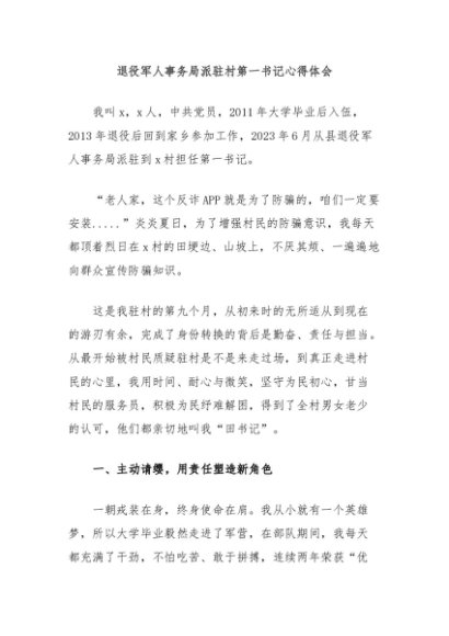 / 【七哥公文】2024年:退役军人事务局派驻村第一书记心得体会+更多免费公文+VX:QiGeGongWen2024
