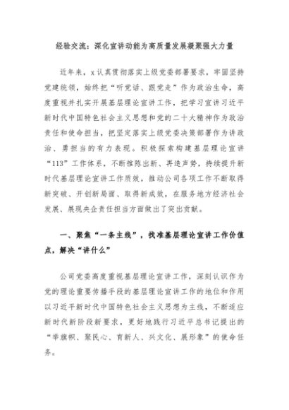 / 【七哥公文】2024年:经验交流:深化宣讲动能为高质量发展凝聚强大力量+更多免费公文+VX:QiGeGongWen2024
