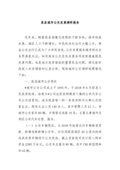 / 【七哥公文】2024年:某县城市公交发展调研报告+更多免费公文+VX:QiGeGongWen2024