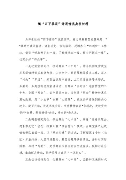 / 【七哥公文】2024年:镇“四下基层”开展情况典型材料+更多免费公文+VX:QiGeGongWen2024