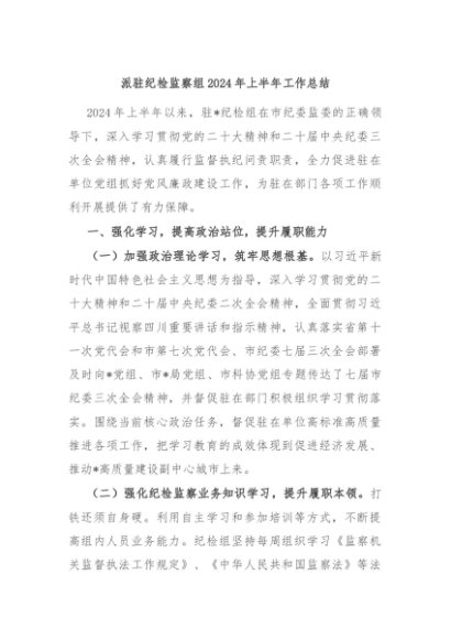 / 【七哥公文】2024年:派驻纪检监察组2024年上半年工作总结+更多免费公文+VX:QiGeGongWen2024