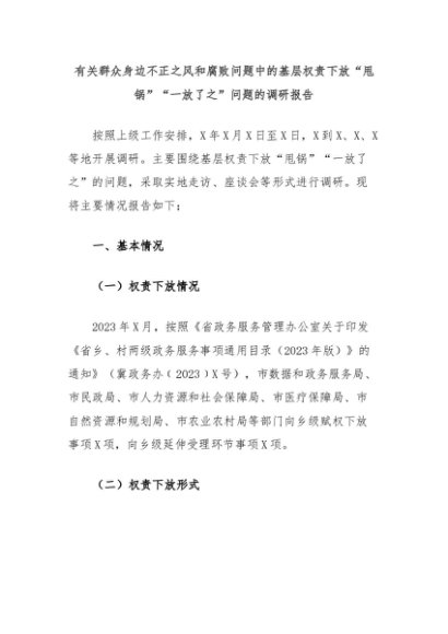 【七哥公文】2024年:有关群众身边不正之风和腐败问题中的基层权责下放“甩锅”“一放了之”问题的调研报告+更多免费公文+VX:QiGeGongWen2024