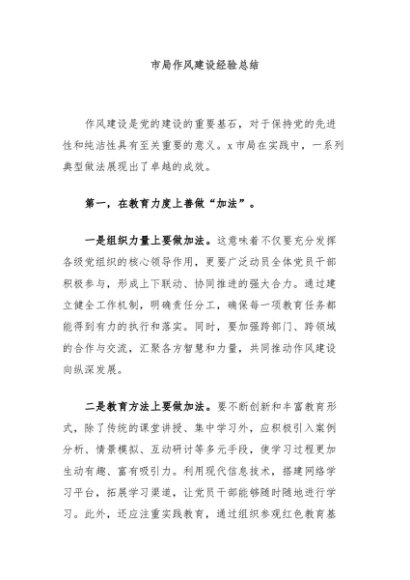 / 【七哥公文】2024年:市局作风建设经验总结+更多免费公文+VX:QiGeGongWen2024