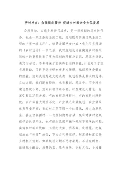 / 【七哥公文】2024年:研讨发言:加强规划管控 促进乡村振兴全方位发展+更多免费公文+VX:QiGeGongWen2024