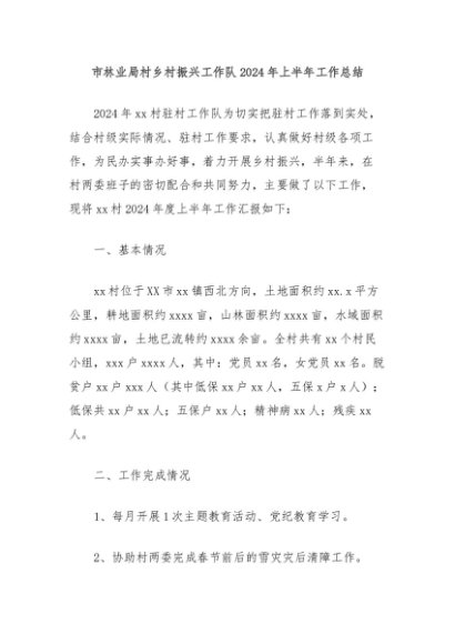 / 【七哥公文】2024年:市林业局村乡村振兴工作队2024年上半年工作总结+更多免费公文+VX:QiGeGongWen2024