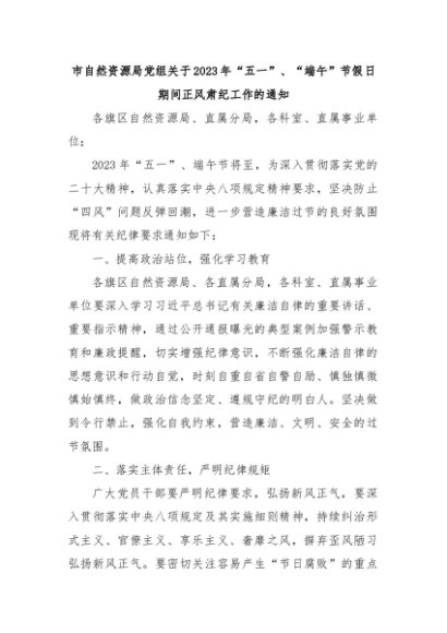 【七哥公文】2024年:市自然资源局党组关于2023年“五一”、“端午”节假日期间正风肃纪工作的通知+更多免费公文+VX:QiGeGongWen2024