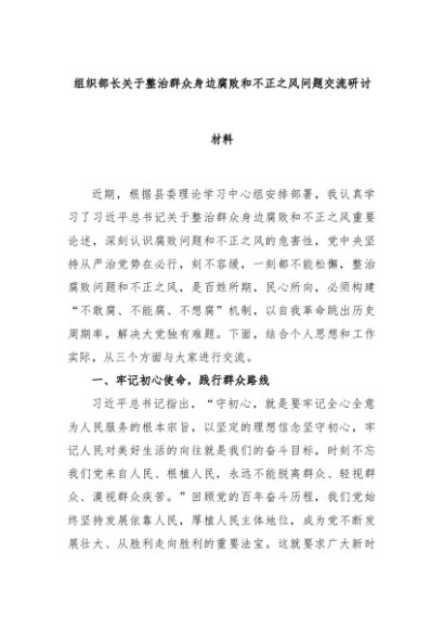 【七哥公文】2024年:组织部长关于整治群众身边腐败和不正之风问题交流研讨材料+更多免费公文+VX:QiGeGongWen2024