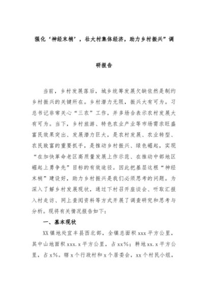 【七哥公文】2024年:强化‘神经末梢’,壮大村集体经济,助力乡村振兴”调研报告+更多免费公文+VX:QiGeGongWen2024
