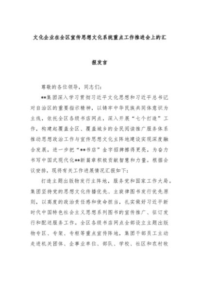 【七哥公文】2024年:文化企业在全区宣传思想文化系统重点工作推进会上的汇报发言+更多免费公文+VX:QiGeGongWen2024