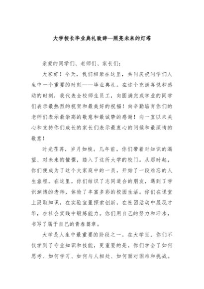 【七哥公文】2024年:大学校长毕业典礼致辞—照亮未来的灯塔 (1)+更多免费公文+VX:QiGeGongWen2024