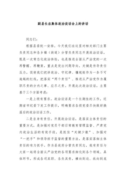 【七哥公文】2024年:副县长在集体政治谈话会上的讲话+更多免费公文+VX:QiGeGongWen2024