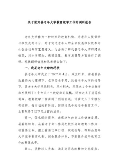 / 【七哥公文】2024年:关于做好县老年大学教育教学工作的调研报告+更多免费公文+VX:QiGeGongWen2024