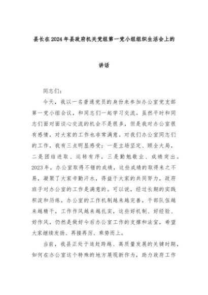 【七哥公文】2024年:县长在2024年县政府机关党组第一党小组组织生活会上的讲话+更多免费公文+VX:QiGeGongWen2024