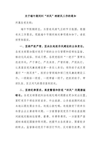 【七哥公文】2024年:关于端午期间纠“四风”树新风工作的通知+更多免费公文+VX:QiGeGongWen2024