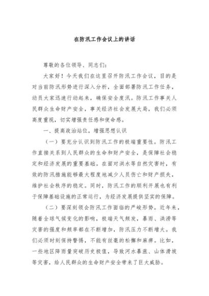 / 【七哥公文】2024年:在防汛工作会议上的讲话 (1)+更多免费公文+VX:QiGeGongWen2024