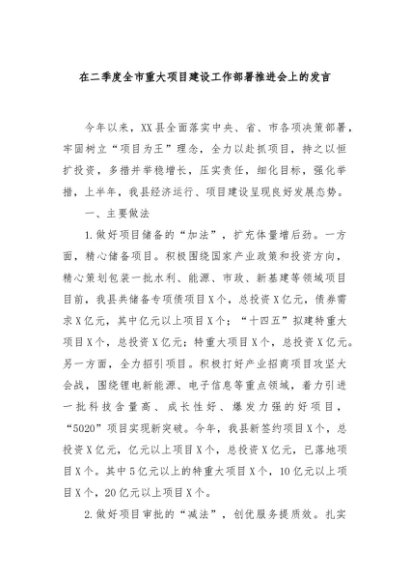 / 【七哥公文】2024年:在二季度全市重大项目建设工作部署推进会上的发言+更多免费公文+VX:QiGeGongWen2024