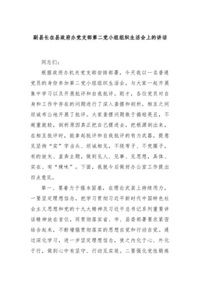【七哥公文】2024年:副县长在县政府办党支部第二党小组组织生活会上的讲话+更多免费公文+VX:QiGeGongWen2024