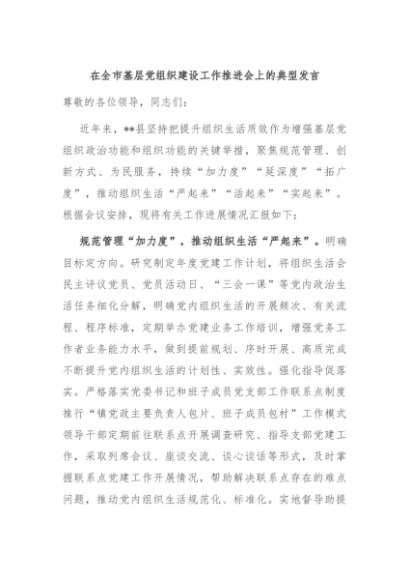 / 【七哥公文】2024年:在全市基层党组织建设工作推进会上的典型发言+更多免费公文+VX:QiGeGongWen2024