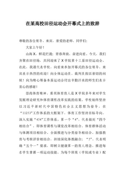 / 【七哥公文】2024年:在某高校田径运动会开幕式上的致辞 (1)+更多免费公文+VX:QiGeGongWen2024