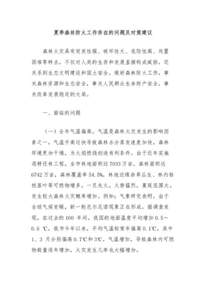 / 【七哥公文】2024年:夏季森林防火工作存在的问题及对策建议 (1)+更多免费公文+VX:QiGeGongWen2024