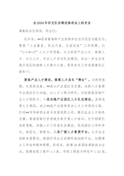 / 【七哥公文】2024年:在2024年四支队伍建设推进会上的发言+更多免费公文+VX:QiGeGongWen2024