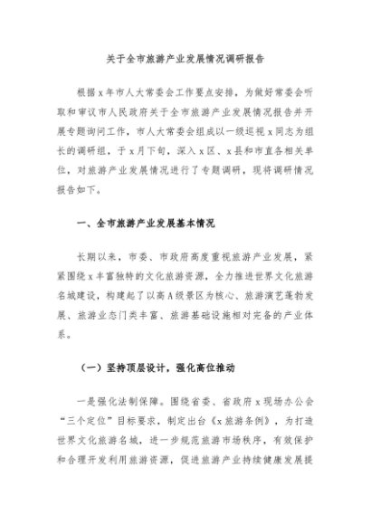 / 【七哥公文】2024年:关于全市旅游产业发展情况调研报告+更多免费公文+VX:QiGeGongWen2024