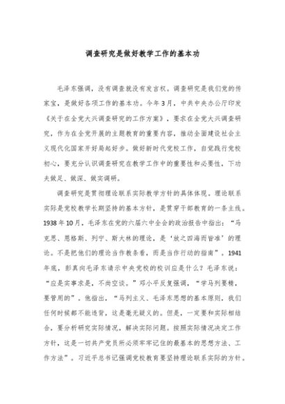 【七哥公文】2024年:调查研究是做好教学工作的基本功+更多免费公文+VX:QiGeGongWen2024