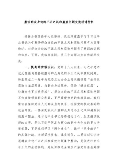 / 【七哥公文】2024年:整治群众身边的不正之风和腐败问题交流研讨材料+更多免费公文+VX:QiGeGongWen2024