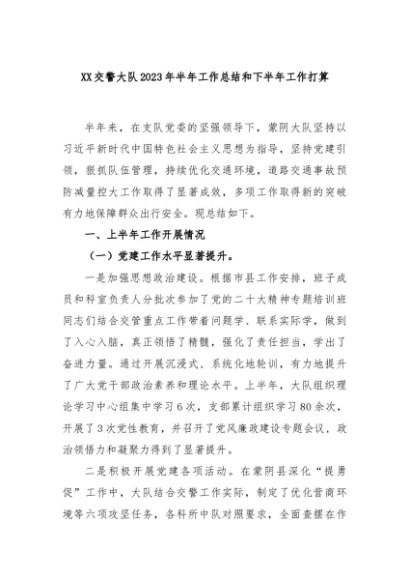 【七哥公文】2024年:XX交警大队2023年半年工作总结和下半年工作打算+更多免费公文+VX:QiGeGongWen2024