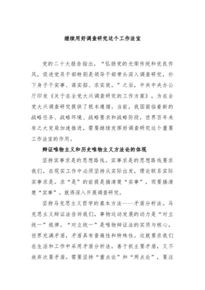 / 【七哥公文】2024年:继续用好调查研究这个工作法宝+更多免费公文+VX:QiGeGongWen2024