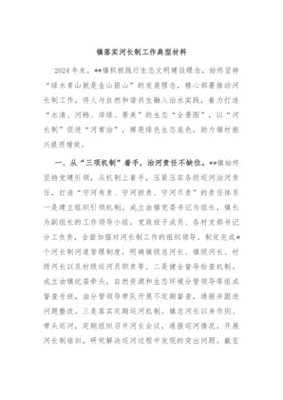 / 【七哥公文】2024年:镇落实河长制工作典型材料+更多免费公文+VX:QiGeGongWen2024