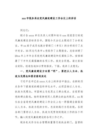 / 【七哥公文】2024年:xxx市税务局在党风廉政建设工作会议上的讲话+更多免费公文+VX:QiGeGongWen2024