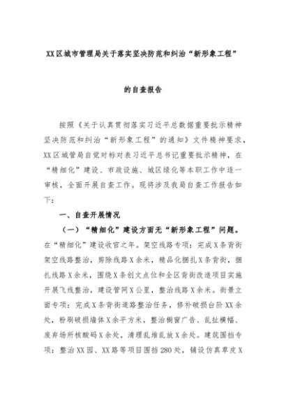 【七哥公文】2024年:XX区城市管理局关于落实坚决防范和纠治“新形象工程”的自查报告+更多免费公文+VX:QiGeGongWen2024