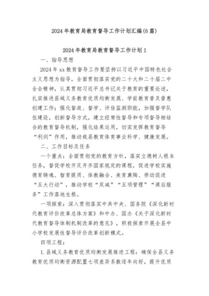 / 【七哥公文】2024年:(6篇)2024年教育局教育督导工作计划汇编+更多免费公文+VX:QiGeGongWen2024