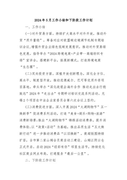 【七哥公文】2024年:2024年5月工作小结和下阶段工作计划+更多免费公文+VX:QiGeGongWen2024