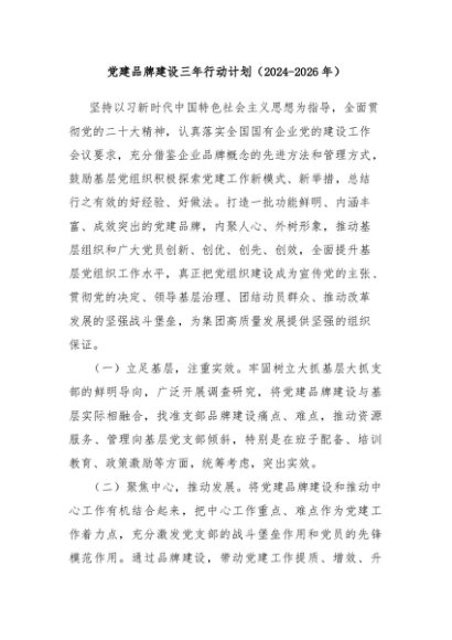 / 【七哥公文】2024年:党建品牌建设三年行动计划(2024-2026年)+更多免费公文+VX:QiGeGongWen2024