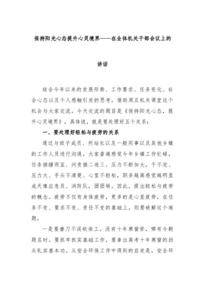 【七哥公文】2024年:保持阳光心态提升心灵境界——在全体机关干部会议上的讲话+更多免费公文+VX:QiGeGongWen2024